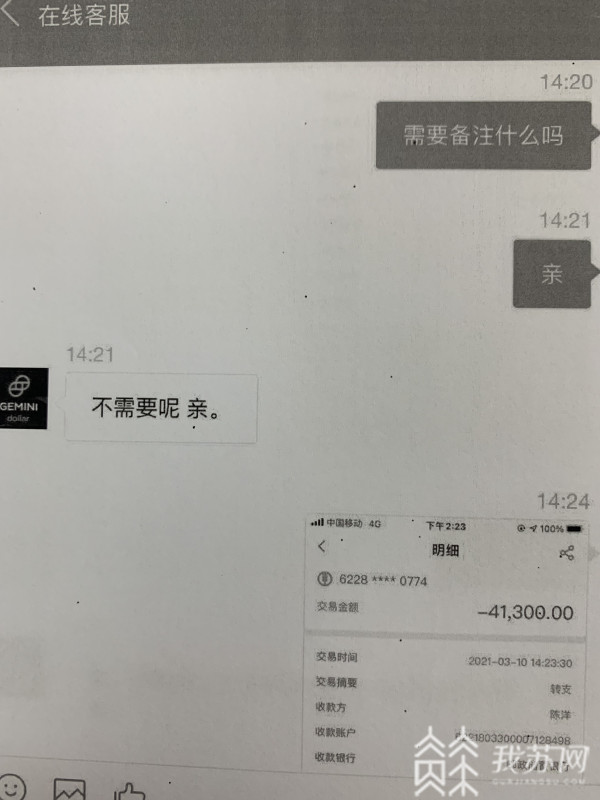 第二天一早,陈先生打开手机发现32万还没有到账,就去询问了客服。对方称陈先生的提款信息有误,需要充32491元才能重新认证,陈先生查看后发现自己的银行账号果然多了一位,于是马上充钱进行了认证。可是刚操作完,对方问是不是忘了填认证码,于是让陈先生重新充值35714元,并填入认证码才可以提现,陈先生也只好照做。然而到了下午,陈先生还是无法体现,客服表示因为陈先生的信用度下降到了76,需要提升到100才能提现。为了尽快把钱提出来,陈先生只好按照对方的要求进行了充值,前后加起来总共充值了19万余元。
