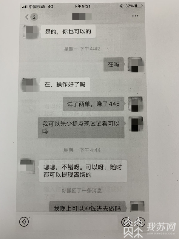 第一次玩,陈先生还有点谨慎,先充了1000元,按照客服的指示一步步操作后,很快陈先生的账户里变成了1445元,陈先生喜出望外,试着把钱提到了自己的银行账户里,果然没多久就到账了。这时,客服称现在起充最低3万才可以继续玩,陈先生已经完全相信了对方,于是向指定账户充值了3万元,当天晚上,陈先生在团队专业老师的指导下,账户里的数额变成了32万,随后,陈先生选择了提现,就去休息了。