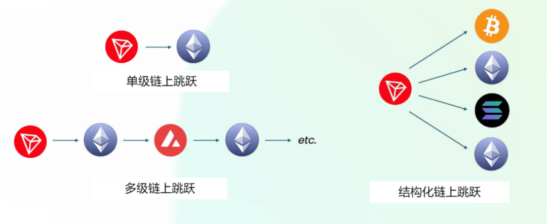 其中,“链上跳跃”(Chain-hopping)是跨链洗钱活动中最核心、最普遍的手法。这种行为涉及将资产在不同区块链之间转移,或在同一区块链上兑换成其他资产。虽然单次的资产兑换通常是正常的加密资产活动,但当资金被分散至多个区块链(即结构化链上跳跃, Structured chain-hopping)或连续在不同区块链间进行多次兑换(即多级跳跃, Multi-hop chain-hopping)时,其可疑性便显著增加。此类活动往往伴随着高昂的交易成本,除了混淆资金踪迹外几乎没有实际的经济目的,因此构成了重要的风险警示信号。