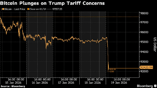 2026-01-20米兰体育,米兰体育官方网站,米兰体育APP下载美国总统唐纳德・特朗普提议对八个欧洲国家加征新进口税后,风险资产价格普遍下挫,避险需求升温,加密货币随之大幅跳水。