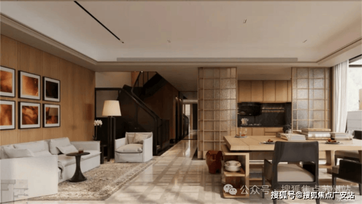 一楼LDKG一体化设计,不仅让空间更加完整,还增强了家庭成员间的互动。南向客厅+餐厅的一个巨大开间,搭配大面的落地窗。