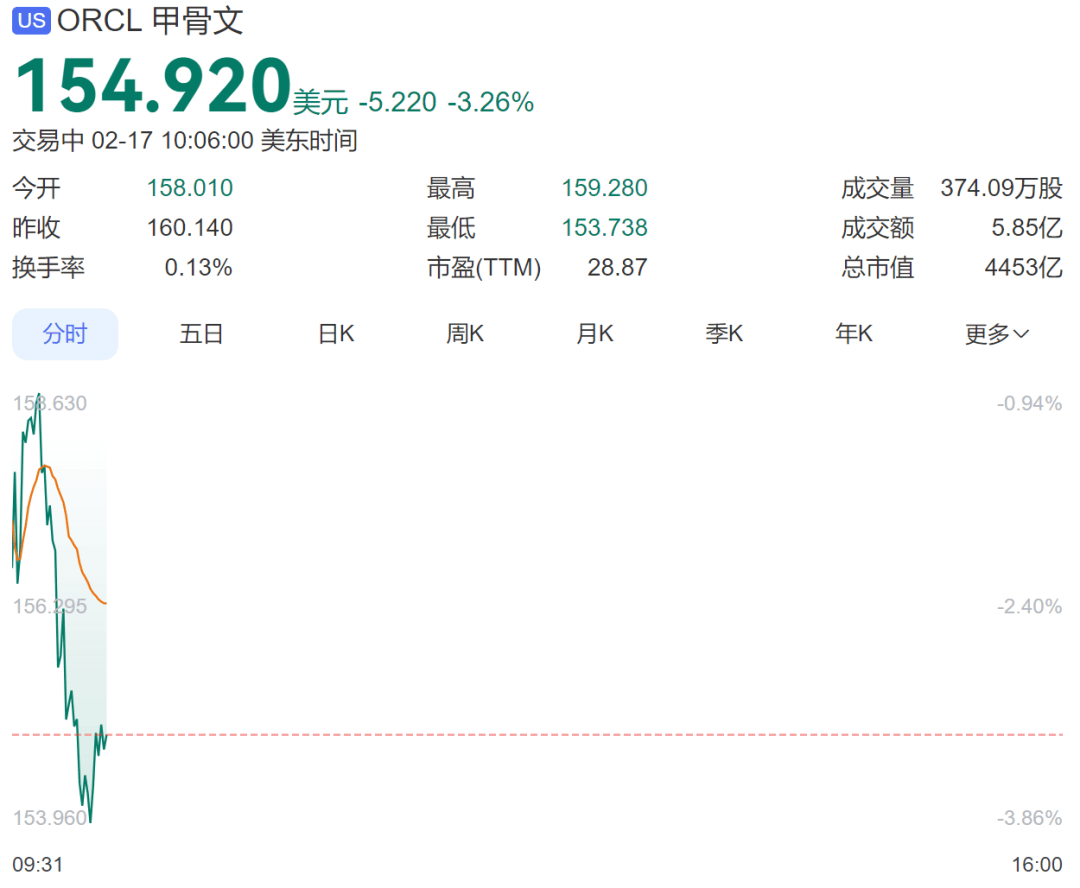 台积电股价下跌1.9%;博通股价下跌1.4%;甲骨文股价下跌3.26%;美光科技股价下跌3.1%。
