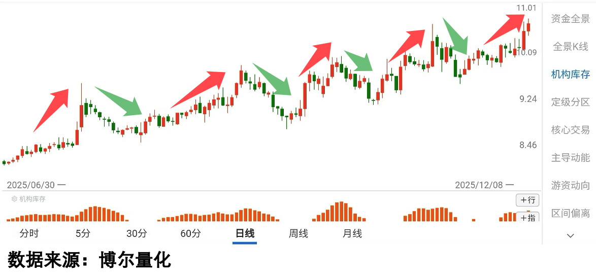 如果说没库存的行情是“一潭死水”,那有库存的行情就是“活水长流”。就算遇到短期波动,只要「机构库存」一直活跃,就说明机构大资金还在积极参与,行情就有延续的动力。就像热门餐厅,就算偶尔遇到设备故障暂停营业,很快就会恢复,客人还是愿意排队等,因为大家认可这家店的价值。 看图3: