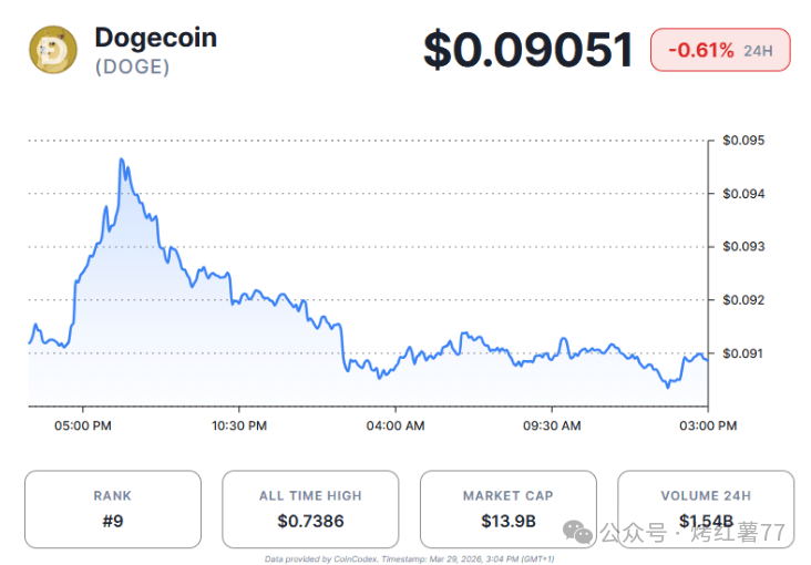 截至发稿,狗狗币价格在0.0905美元左右,24小时微跌0.61%。但从盘面看,交易员们显然已经在为更大的波动做准备了。