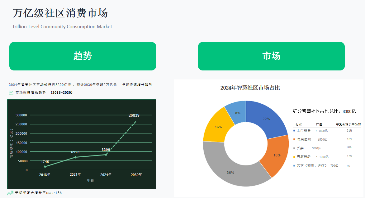 再看数据,更直观:2024年智慧社区市场规模已经近8300亿元,预计2030年直接突破2万亿元,年复合增长率高达18%!
