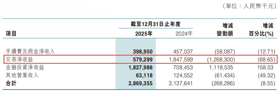 简单说,银行持有的一些用于短期交易的债券,在2025年因市场利率上涨,价格普遍下跌,导致这些资产“账面上亏了钱”。而2024年同期,市场情况好,同样的资产是“账面上赚钱的”。