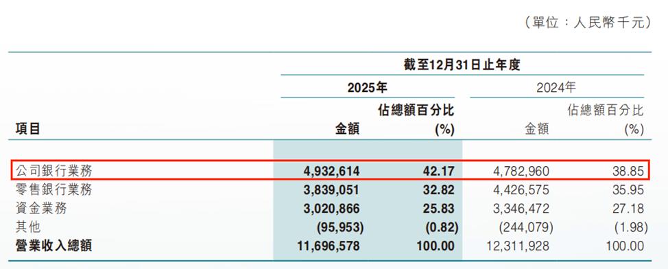 对公贷款的持续投放,稳定性较强,取得了不错收益,与其相关的公司银行业务是三大主心骨业务中唯一一个实现业绩双增的。数据显示,2025年该行公司银行业务实现收入49.33亿元,同比增长3.13%,对总营收的贡献占比提升至42.17%;税前利润实现翻倍式增长,达到了14.83亿元,同比大涨187.54%。
