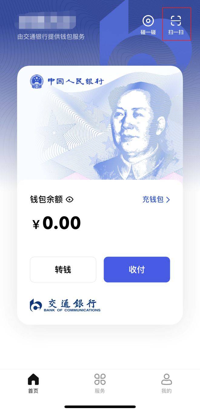 以交行为例,进入数字人民币App,选择交行钱包,点击右上角“扫一扫”,扫描商家收款码即可完成支付。